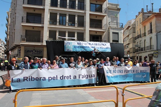 “Considerem que el Pla de Conca aprovat és molt nociu per al Xúquer, l’Albufera i la Ribera. Per això, demanem un canvi perquè el riu i l’Albufera tinguen cabals ecològics; perquè no es faça cap altre transvasament al Vinalopó, l’únic possible és el de la Marquesa, el que s’està fent en estos moments; per a detindre la sobreexplotació del marge oriental; i per a demanar també un abastiment per a la Ribera que no depenga de permutes, sinó que siga una concessió com la té València, Alacant o Sagunt”, va explicar Paco Sanz, potaveu de Xúquer Viu.
