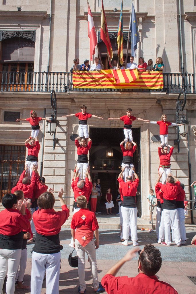 Després, el claustre de l’Espai Fuster s’ha omplert de danses i de la música del tabal i la dolçaina de la mà del Grup de Danses l’Almogàver i l’Associació Cultural La Xala. I per finalitzar aquesta primera part de la festa la Muixeranga de Sueca ha aixecat una torre humana dintre el mateix claustre de l’Espai Fuster al ritme dels repics i el ressò del tabal i la dolçaina de l’Associació Cultural Tabalaina.