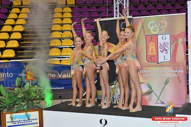 Maria Almenar, Maria Ferrando, Andrea Pérez, Cora Serrano i Sarhay Navarro, la gimnasta cedida pel Club de Gimnàstica Rítmica Ciutat de Carlet, van donar-ho tot en la seua actuació. Miriam Filgueras, l’entrenadora del conjunt d’ACEUS, explica que les joves van realitzar una coreografia en la modalitat de corda amb molta dificultat, col·laboracions de risc i música dinàmica. “Van demostrar una execució molt alta sobre el tapis i això va fer que destacaren respecte a altres conjunts” assenyala orgullosa Filgueras, qui ha apuntat també que el triomf aconseguit encara té més mèrit tenint en compte que han pogut entrenar l’actuació durant poc més de dos mesos només. El conjunt ha realitzat una temporada fantàstica i ha obtingut diferents medalles i podis també en les competicions prèvies.