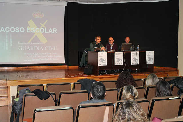 L’alferes i cap de la Caserna Principal de la Guàrdia Civil de Sueca, Carlos Pérez Jordá, i el guàrdia civil, Francisco José Castro Aguilera, van ser els encarregats d’oferir ahir la primera d’estes xarrades, dirigida en esta ocasió als pares, en el saló d’actes de la Casa de la Cultura. “La xarrada està enfocada a l’assetjament escolar que patixen en els col·legis els menors d’entre 12 i 16 anys, fonamentalment. La primera mesura a tindre en compte per a detectar-lo depén en gran part dels professors, que han d’estar alerta de les circumstàncies en què puguen trobar-se els alumnes, com pertànyer a una ètnia minoritària; les xiques, que puguen patir-lo pel tema sexual; o l’assetjament per homofobia”, va explicar Pérez. “És una sort poder comptar amb l’experiència de la Guàrdia Civil en un tema que tant preocupa els pares. És un tema complex perquè succeïx tant en l’àmbit escolar com fora, i és realitzat per xiquets del nostre propi entorn. Moltes vegades no sabem com detectar-lo i després com intervindre. En esta ponència intentem aclarir tots els dubtes”, va afirmar la regidora de Sanitat i Prevenció Comunitària, Josefa Juan.