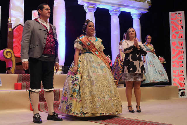 Isabel Fernández del Moral, Lluch Escrivá, Ruth Ferrando i Laia Ortega, quatre de les integrants de la Cort d’Honor de Sara Roselló, la Fallera Major eixint, van estar les encarregades de conduir l’acte i presentar a la nova màxima representant de les Falles suecanes.