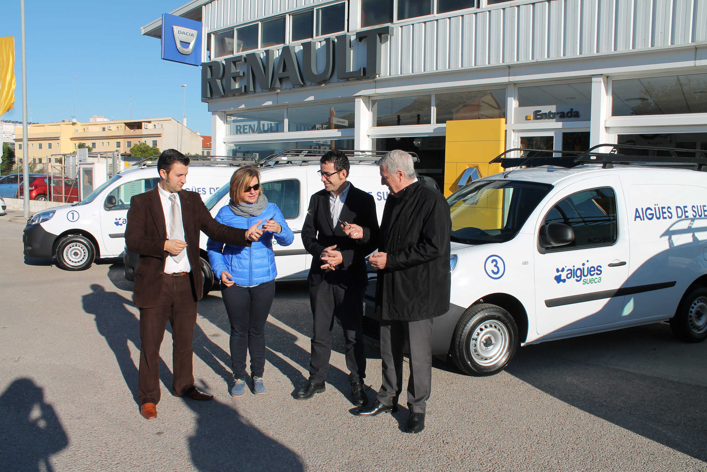 A l’acte d’entrega dels nous vehicles, realitzat en el concessionari de Renault, han assistit l’alcalde de Sueca, Salvador Campillo; la regidora de Serveis Municipals, Pilar Moncho, i representants de la marca. Les quatre furgonetes que s’han adquirit disposen de dos places en la part davantera, i d’una part posterior estanca, perquè els ocupants no patisquen danys per possibles caigudes de la càrrega que transporten, i sense finestres, perquè no es puga veure des de fora la càrrega. “Considerem que este sistema de rènting és el millor possible, tenint en compte que són vehicles que estan en continu ús. Ara, al contractar-lo amb un concessionari de Sueca, a més d’aconseguir-los per una menor quantia, el seu manteniment serà més fàcil i pràctic, evitant-nos desplaçaments a altres poblacions”, ha assenyalat l’alcalde, Salvador Campillo.