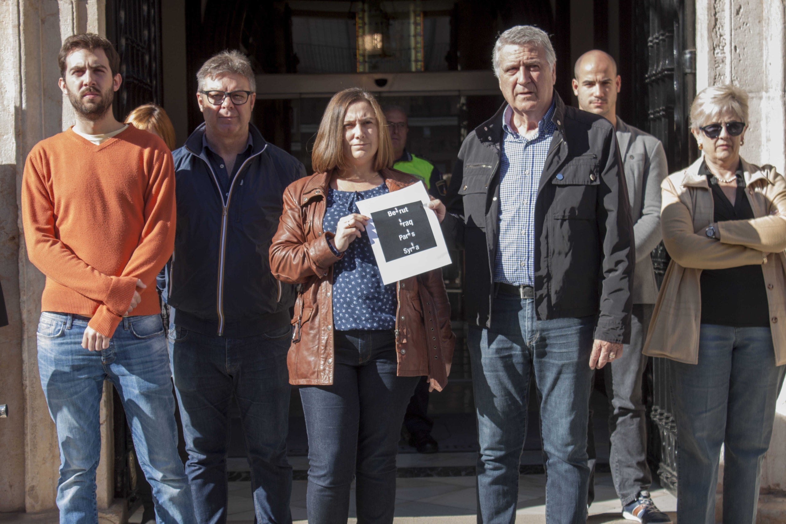 En acabar el minut de silenci, l’alcaldessa de Sueca, Raquel Tamarit, va llegir un xicotet manifest en què mostrava el seu rebuig, en nom de l’Ajuntament de Sueca, als atemptats ocorreguts la nit de divendres a París, a les massacres similars que s’estan produint en diferents indrets com Iraq, Beirut o Síria i a totes les accions violentes que ocorren al món.