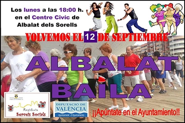 Comença l’11 de setembre i la inscripció és fa l’Ajuntament. No hi ha límit d’edat. Ballar és una manera fàcil i divertida de fer una activitat física. A més anar a ballar obliga a arreglar-es, eixir de casa i contactar amb uneixes altres persones amb la qual cosa és millora l’estat d’ànim i tot el que això suposa.