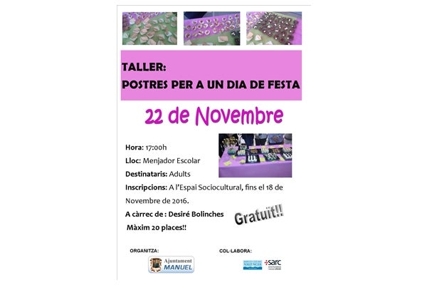 A càrrec de Desiré Bolinches i en col·laboració del SARC (Servei d’Assistència i Recursos Culturals). Serà al menjador del col·legi. Places limitades. Informació i Inscripcions a l’Espai Sociocultural.