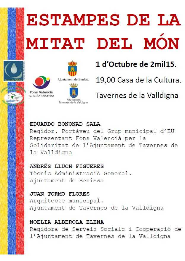 Serà una jornada de divulgació i sensibilització a través, també, de l’exposició fotogràfica “Estampes de la mitat del món” i dos audiovisuals que ens mostraran la realitat d’estes poblacions de l’Equador.