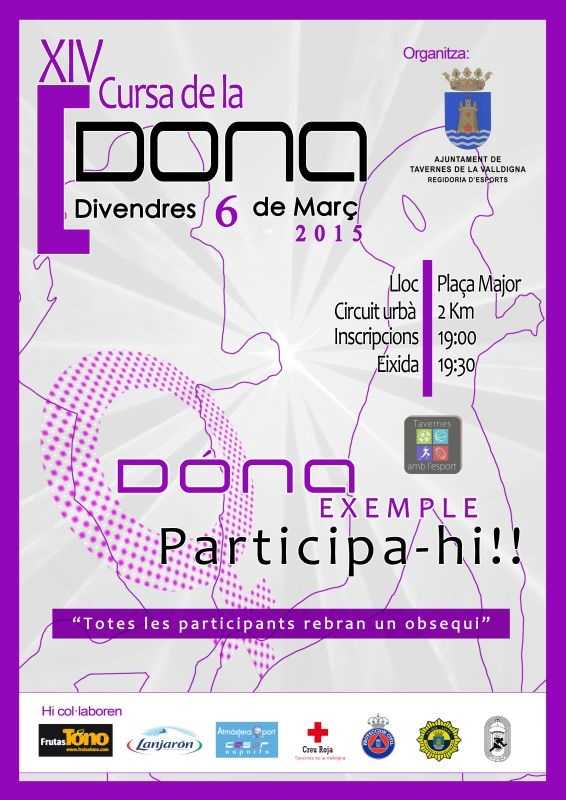 Un any mes la Regidoria d’Esports organitza aquesta cursa popular per tal de commemorar el dia de la Dona Treballadora. Les inscripcions s’efectuaran a la Plaça Major, lloc on es trobarà l’eixida i la meta, a partir de les 19 hores de la vesprada per efectuar l’eixida a les 19:30 hores, després del preceptiu i tradicional escalfament col·lectiu que faran les participants dirigides pels monitors de la regidoria a ritme musical.