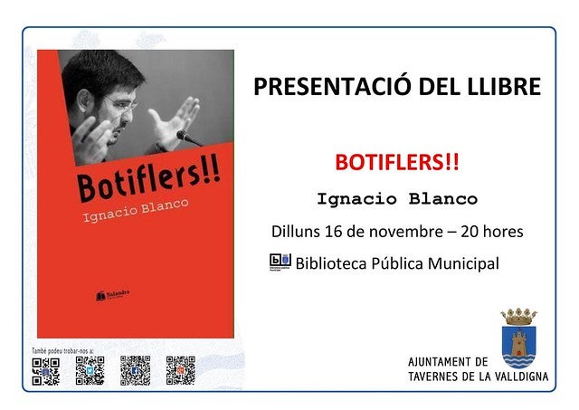 Ignacio Blanco presenta Botiflers!! este dilluns 16 de novembre a les 20 hores en la Biblioteca Pública.