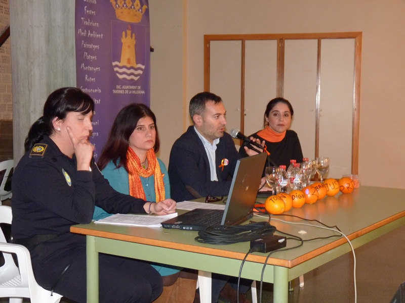 L’Ajuntament de Tavernes va deixar en les cadires dels assistents un detall: un marcapàgina i una taronja (regal d’Emilio Mollà i Federico Cuñat) com a símbol d’adhesió a la iniciativa de l’ONU. A més, es van repartir uns díptics de la Policia Local on els veïns poden trobar quins són els signes de maltractament i què fer en cas de patir-ne. Per a demanar ajuda hi ha uns telèfons als quals tocar:
