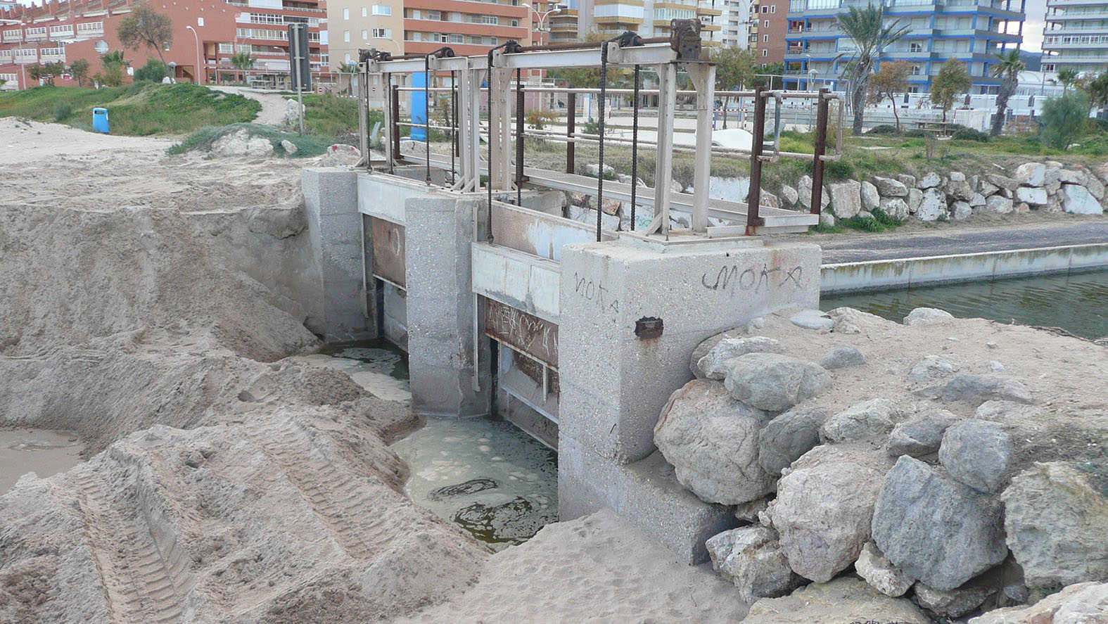 La Regidoria d’Obres i Contractació efectua treballs d’eliminació de l’arena de la mar acumulada davant les comportes del canal de defensa contra les avingudes del Xúquer, que podrien dificultar-ne l’obertura en cas de necessitat.