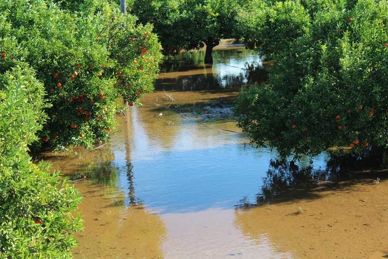 El temporal ha produït greus danys en infraestructures públiques i privades tant al nucli urbà com al terme. Quant a la zona agrícola, s’han inundat grans extensions de terrenys com a conseqüència de la pluja intensa i han resultat greument afectats els seus cultius. En molts casos (camps dedicats al cultiu de la taronja, per exemple) la collita es farà malbé. També els camins rurals s’han vist afectats i la força de l’aigua ha fet malbé una part important del cordó de dunes.