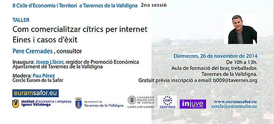 “Com comercialitzar cítrics a través d’Internet. Eines i casos d’èxit” és el títol de l’activitat formativa que, dirigida pel consultor Pere Cremades, tindrà lloc dins de les activitats de l’aula formativa del Braç Treballador.