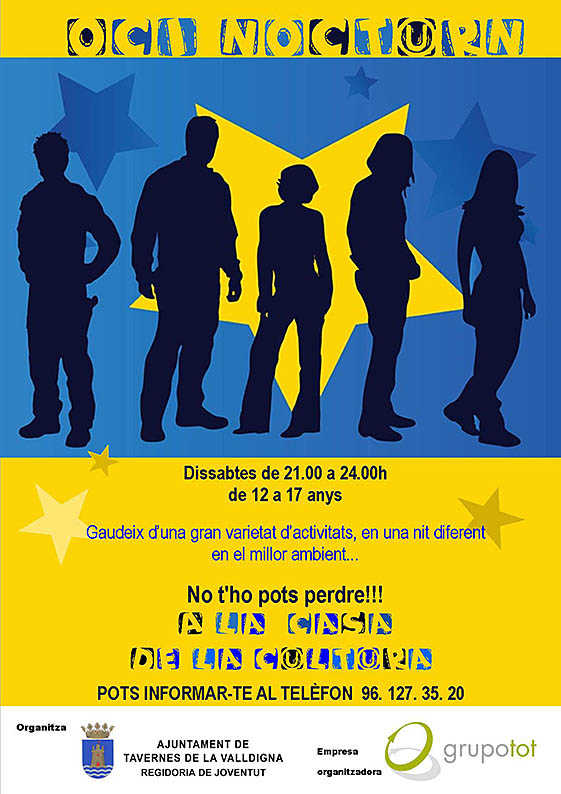 El regidor de Joventut Josep Llácer, de Compromís, ha indicat que la proposta “Oci nocturn” persegueix com a objectiu “posar a l’abast de la joventut un ventall d’activitats i alternatives per als moments d’oci de les nits de dissabte, de manera que impliquen la utilització saludable i positiva del temps d’oci, i recuperar el poble com espai d’encontre dels joves durant el cap de setmana”.
