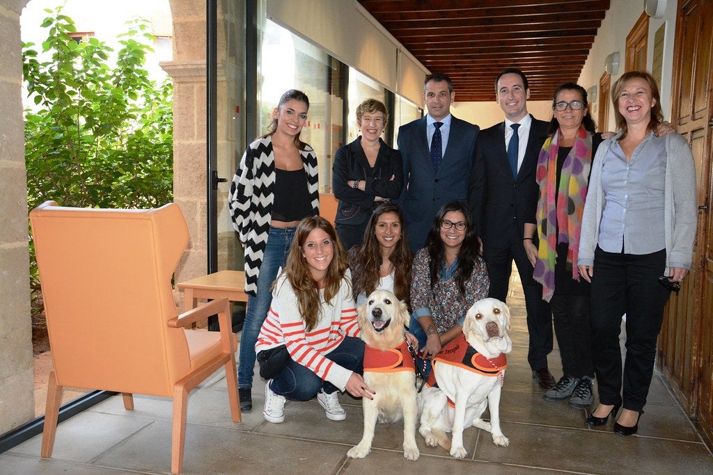 Avui la regidora de Serveis Socials, Pepa Gisbert, i els directors de les tres oficines que té La Caixa a Xàbia han estat en el Centre de Dia amb l’equip, tant l’humà com el caní, que a partir de la setmana vinent s’encarregarà d’aquestes teràpies, consistents en dues sessions per setmana, una enfocada al vessant cognitiu i una altra a l’emocional.