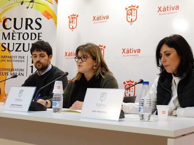 La regidora del Conservatori, Empar Penadés (Compromís) ha presentat la tercera edició del Curs del Mètode Suzuki del ‘Lluís Milà’. Este seminari coordinat per Seo Perucho i Joan Furió, professors del conservatori municipal, s’impartirà el proper cap de setmana 11 i 12 de febrer.