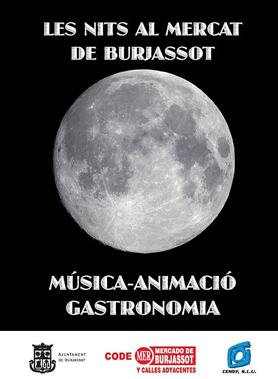 Des de les 21 hores i fins a la mitjanit el Mercat Municipal de Burjassot tornarà a acollir diverses activitts gratuïtes d’animació, entre les quals destaquen el concert El Ser Humano l’alter ego del cantautor valencià Gonzalo Fuster en el qual mostra el seu costat més íntim i personal, amb una dilatada trajectòria musical formant part de bandes com Ontario o Trinidad, i que va donar el salt en solitari amb el seu primer disc homònim, el seu últim treball és l’excel·lent Pyla Pa.