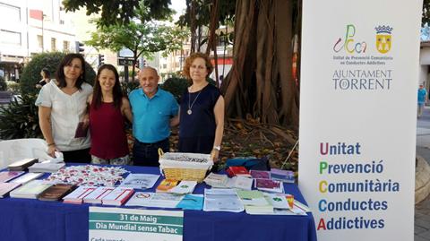 Amb motiu del Dia Mundial Sense Tabac, la Unitat de Prevenció de Conductes Addictives ha muntat un punt informatiu en l’avinguda al Vedat, al costat del ficus. Al llarg de tot el matí és molta la gent que s’hi ha acostat per a conéixer els efectes i riscs que té fumar, així com els beneficis que s’obtenen si es deixa.