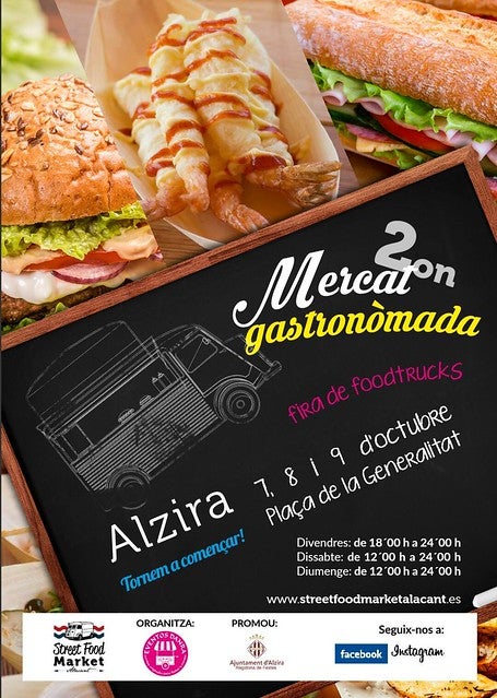 Per segon any consecutiu, la Regidoria de Festes porta a la ciutat d’Alzira una nova edició de la Street Food Market. El cap de setmana del 9 d’octubre s’ompli d’activitats amb més de 30 caravanes gastronòmades que oferiran els seus productes des de divendres a partir de les 18 h fins a diumenge a les 22 h, amb un gran ventall de novetats que rodaran per la plaça de la Generalitat.