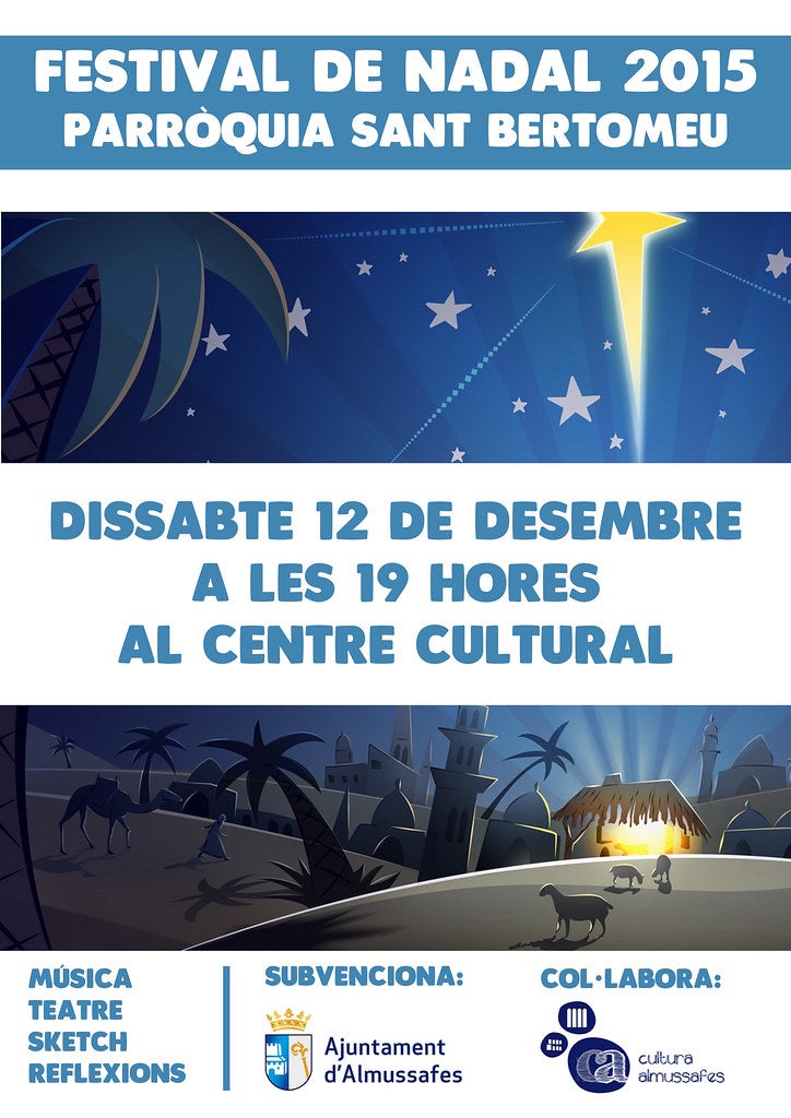 Fidels a la tradició iniciada en 2005, amb l’arribada del Nadal torna també el festival que cada any uneix a tots els joves de la Parròquia Sant Bertomeu Apòstol d’Almussafes i als seus familiars, un espectacle amb el qual els seus participants mostren algunes pinzellades del que para ells significa celebrar aquesta època de l’any, en la qual es commemora el naixement de Jesucrist.
