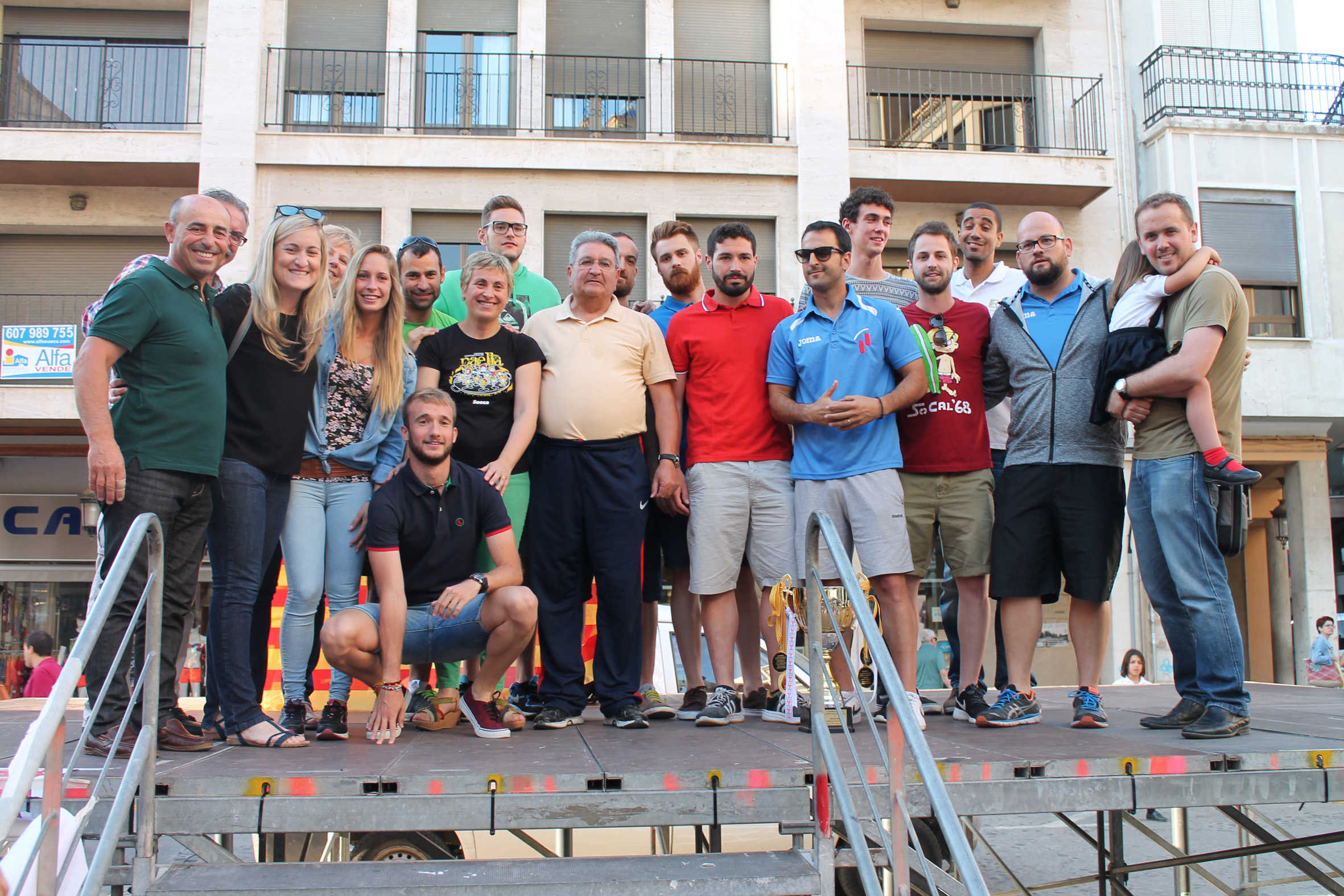 Al finalitzar el lliurament de trofeus, es va oferir un reconeixement en forma d’homenatge per la seua jubilació a un dels professors que ha participat més activament, i durant més temps, en esta competició de l’Esport Escolar. Pablo Vivó, del col•legi Lluís Vives, va rebre emocionat els aplaudiments dels seus alumnes, autoritats i tots els presents en la plaça. L’acte va finalitzar amb una gran foto de família junt al professor homenatjat.