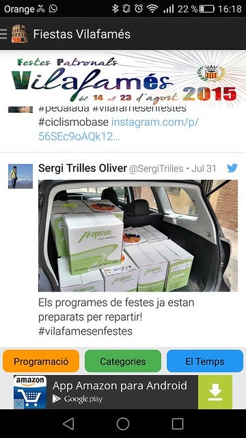 L’aplicació informàtica, implementada per David Oliver, també permet establir els “favorits” que a l’usuari més li puguen interessar. Els usuaris de la APP també poden triar entre castellà i valencià, disposen d’un lector de tweets amb el hashtag #VilafamésEnFestes, i poden visualitzar la predicció meteorològica local.