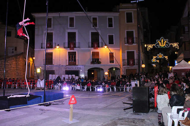 Ahir divendres es va inaugurar del Vé Festival de Circ i Teatre al Carrer d’Ontinyent que oferirà fins a Reis cultura de qualitat i gratuïta per retenir i per atraure gent al comerç urbà i que s’emmarca en la campanya Ontinyent Il·lusiona. Un centenar llarg de persones va assistir a l’espectacle Les arts del cel on Arnau Andre, Marta Erra i la Fem Fatal, amb Pau Blanco com a mestre de cerimònies, van fer vibrar els espectadors i van oferir la millor targeta de presentació de l’ampla programació gratuïta i a l’aire lliure que començarà dilluns amb programa doble.