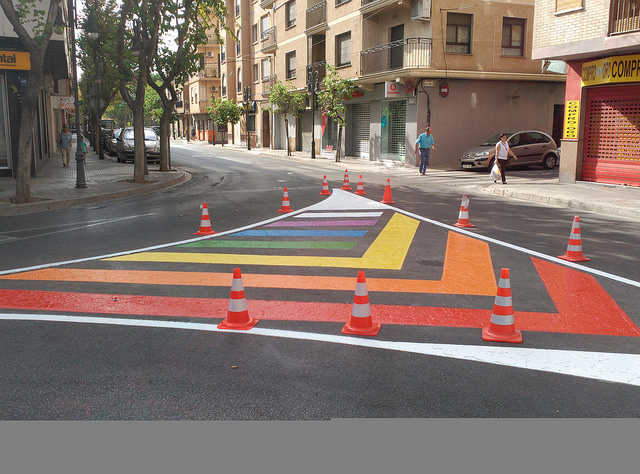 Aquesta pintura, concretament, s’ha realitzat amb motiu de la celebració del dia 28 de juny, Dia Internacional de l’orgull LGTBI.