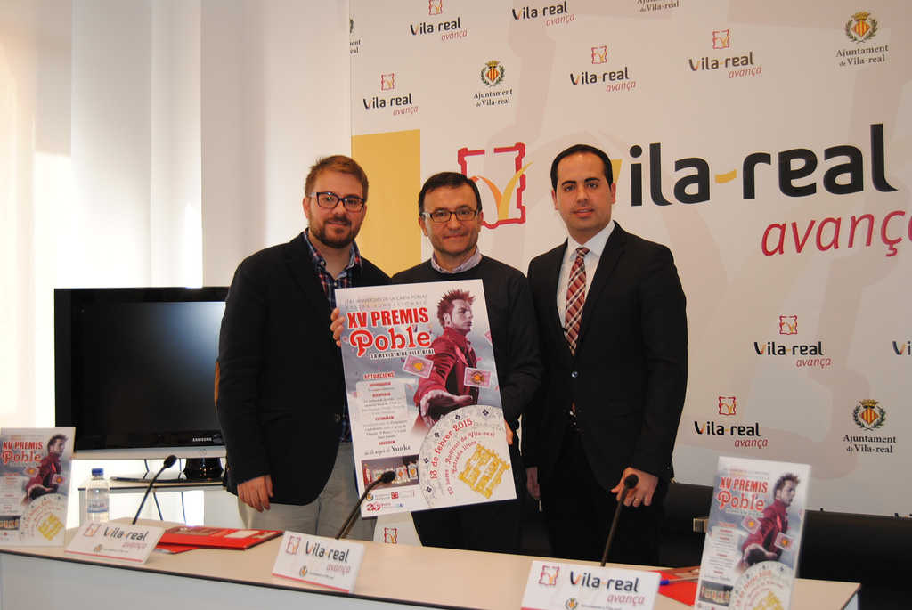 Els Premis Poble celebren el 2015 la seua quinzena edició amb la tradicional gal•la que se celebrarà, emmarcada dins de les festes fundacionals de Vila-real, el pròxim 13 de febrer a les 20.00 hores a l’Auditori Municipal. En la gal•la, els XV Premis Poble reconeixeran la trajectòria de les vila-realenques Paula Bonet i Marina Safont així com el centre associat de la UNED de Vila-real. L’organitzador dels premis, Juanjo Clement, ha donat a conèixer hui els premiats i detalls de la gal•la juntament amb el regidor de Cultura, Alberto Ibáñez i el diputat provincial d’Infraestructures, Hèctor Folgado.