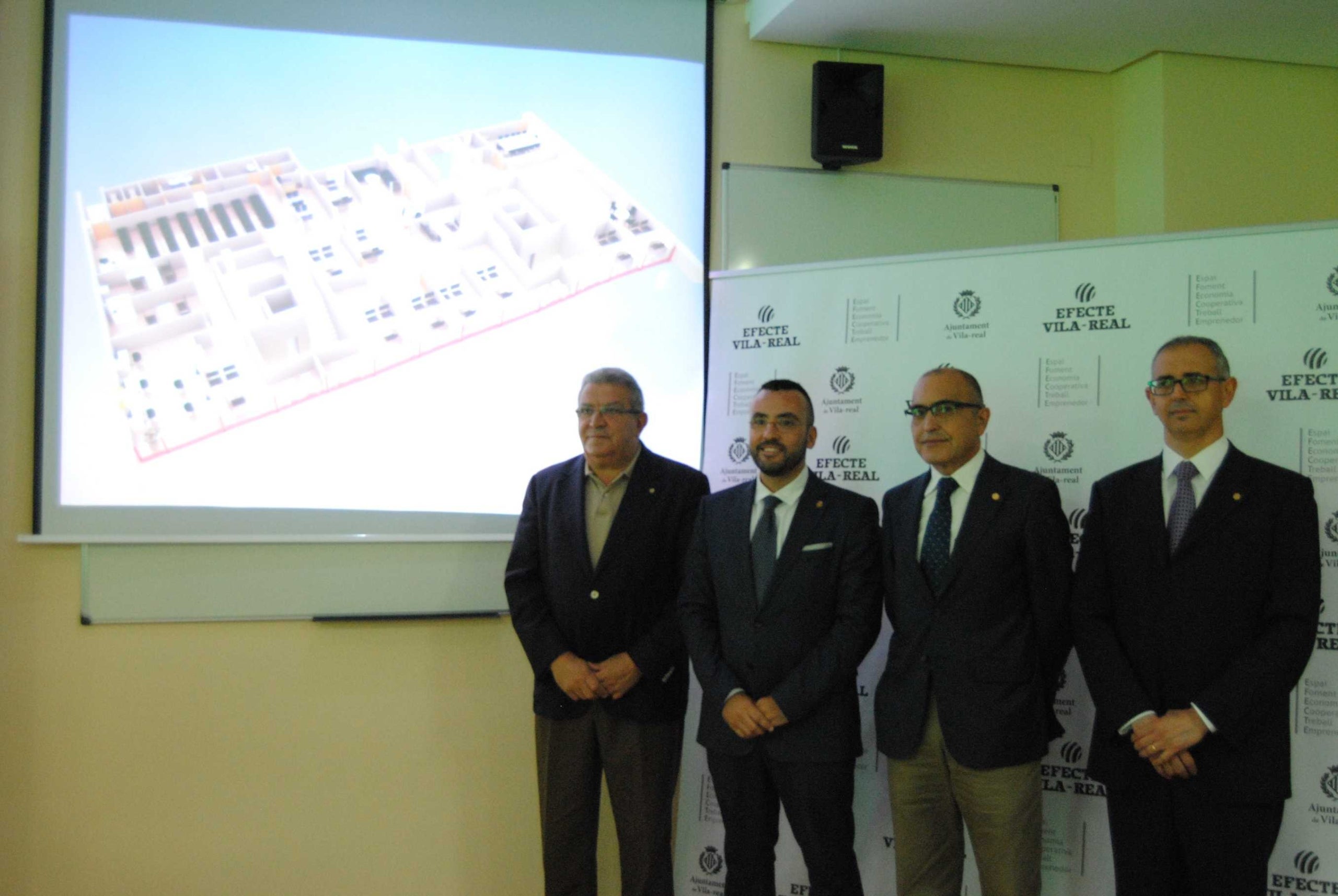 Amb un total de 482 metres quadrats i 11 despatxos, el centre Efecte Vila-real reserva un espai per a ús municipal. “L’Ajuntament comptarà amb dos despatxos, per als quals estem estudiant diferents opcions, com la possible instal•lació de les seus d’Ucovi o Globalis, dues entitats molt vinculades també a la finalitat d’aquest centre de negocis per al desenvolupament del nostre teixit empresarial, el foment de l’emprenedoria i la dinamització econòmica”, valora Benlloch. L’alcalde assenyala, a més, que la creació d’aquest centre de negocis “entronca amb la política d’impuls a l’esperit emprenedor que hem vingut implantant en els últims anys”. Com exemple, el primer edil s’ha referit a la Biblioteca Universitària del Coneixement, “que ara està plena no de llibres sinó de talent”, amb la seu de la Plana de la UJI, l’espai de coworking de Vilabeca o l’oficina d’atenció a l’emprenedor del Pacte per l’Ocupació en els municipis de la zona ceràmica, per la qual han passat ja més de 150 emprenedors. La col•laboració amb els Vivers d’Empreses de la Cambra de Comerç o els programes d’ARA Treball i ARA Formació, dels quals cada any es beneficien una mitjana de 500 vila-realencs, són altres de les accions impulsades per la regidoria d’Economia, dirigida per l’edil Pasqual Batalla.