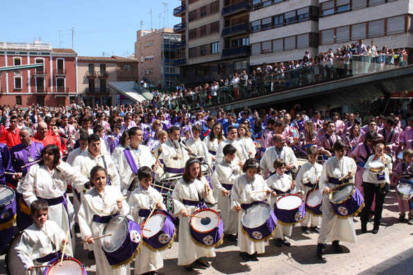 En la tamborrada, que ha comptat amb la participació del regidor de Turisme, Emilio M. Obiol, el president de la Junta Centra de Setmana Santa, Pascual Sanz, i regidors de la corporació municipal, han participat les nou confraries i germandats que tenen banda de bombos i tambors.