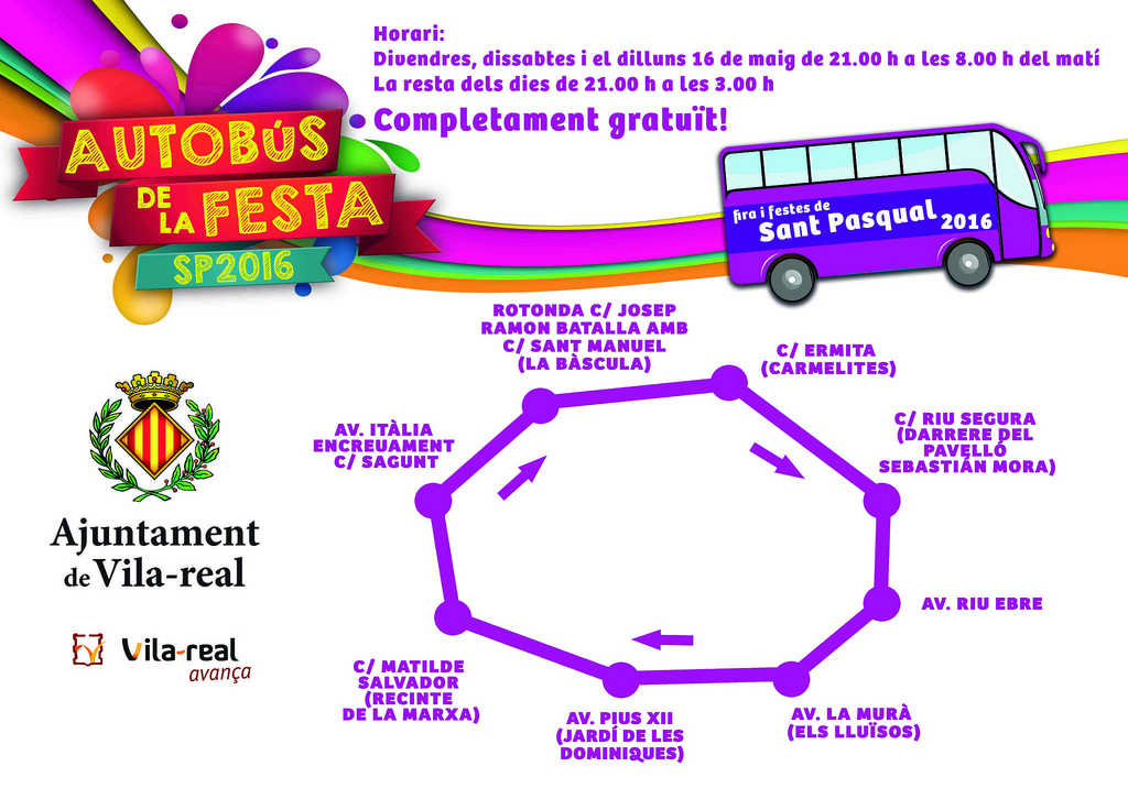 L’Autobús de la Festa arrancarà demà per a connectar veïns i visitants amb el Recinte de la Marxa fins a l’últim dia dels festejos en honor a Sant Pasqual, el diumenge 22, de forma totalment gratuïta.