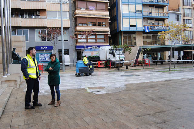 L’Ajuntament de Vila-real ha reforçat la neteja de la ciutat, amb noves brigades especials per a parcs i col·legis, a més d’una actuació integral a la plaça Major. El reforç respon a una millora en el contracte de l’empresa encarregada de la neteja en la ciutat, que inclou la higienització a fons de la plaça Major, amb un cost zero per al consistori. La intervenció, que s’executa amb productes ecològics i amb una màquina elèctrica silenciosa, permetrà “oferir una imatge molt més neta i cuidada d’aquest punt neuràlgic”, explica la regidora de Contractació, Sabina Escrig.