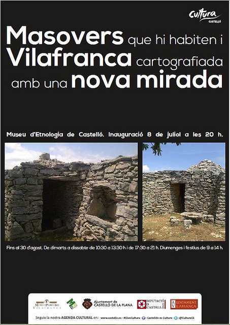 El Museu d’Etnologia de Castelló inaugura aquesta vesprada a les 20h les exposicions “Masovers que hi habiten” i “Vilafranca cartografiada amb una nova mirada”. La mostra, oberta fins al 30 d’agost, és el resultat del treball del doctor en Geografia Paco Tortosa i del topògraf Pau Fuster. Inclou un total de setze pòsters amb diferents fotografies de les masies del municipi així com una breu explicació sobre elles. A més es poden veure exposats diversos panells on s’aprecia l’evolució del treball d’elaboració del mapa. L’exposició inclou, així mateix, la presentació del llibre “Vilafranca. Un mar de pedra seca a mil metres d’altitud “, publicat per Edicions 96.