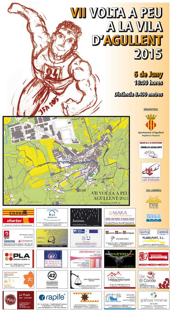 La prova té un recorregut global de 8.400 metres i competiran les categories sènior i veterans A, B, C i D. S’han establert premis per als tres primers classificats de cada categoria, tant en homes com en dones, i els 550 primers atletes classificats rebran una dessuadora de la VII Volta a Peu a la Vila d’Agullent.