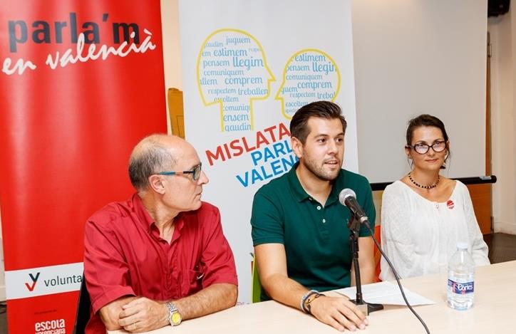 Esta última iniciativa va ser presentada dilluns de vesprada en el Centre Jove del Mercat pel regidor de Promoció Econòmica, Ximo Moreno, i el president d’Escola Valenciana, Vicent Moreno. El programa “Voluntariat pel valencià” porta més de deu anys en funcionament i ja han participat en ell més de 5.000 parelles. El funcionament és ben senzill, es tracta de posar en contacte a persones que volen aprendre valencià i, sobretot, llançar-se a parlar-lo amb una altra persona que ja és valencianoparlant.