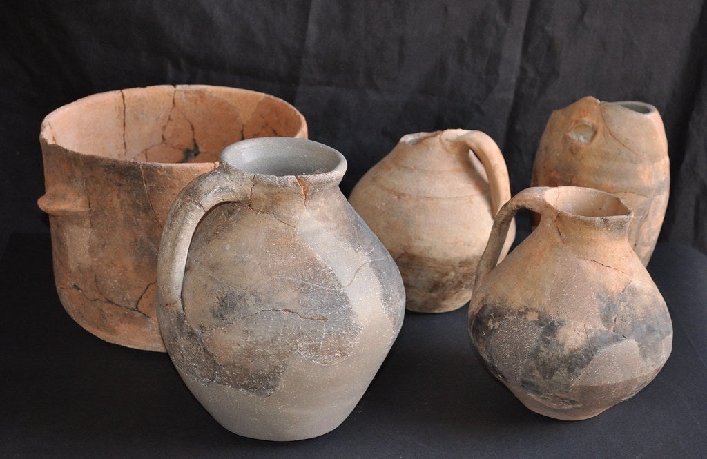 Les peces restaurades, cinc en total, van aparèixer al fons d’una sitja de forma circular excavada al sòl natural de margues blanques, una estructura que havia estat amortitzada com a femer o abocador en el darrer moment d’ocupació i ús d’aquest assentament que podem interpretar com una petita explotació agrícola.