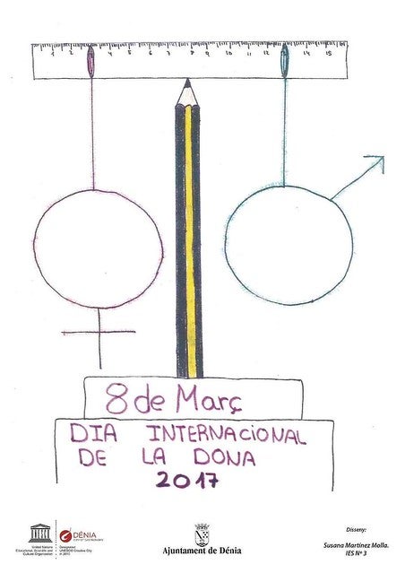 El cartell que dóna imatge a la commemoració del Dia Internacional de la Dona 2017 a Dénia és obra de l’alumna de l’IES número 3 Susana Martínez Molla.