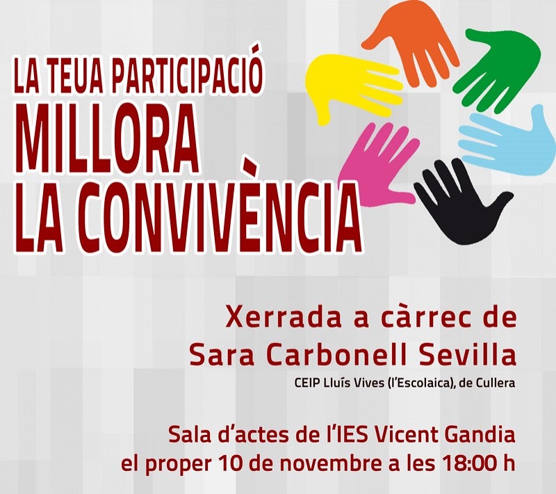 Per aquest motiu, Sara Carbonell Sevilla, del CEIP Lluís Vives (l’Escolaica), de Cullera, ens contarà com fer-ho possible. Com cal organitzar-se i estructurar-se per dur endavant un projecte de convivència que implique totes les parts i ens faça més humans en tots els espais socials. Especialment als centres educatius i a casa.
