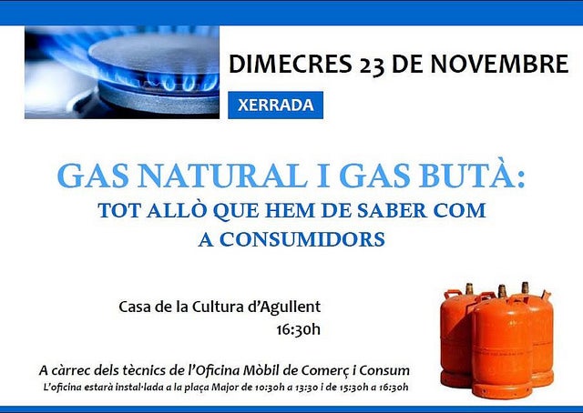 Dimecres 23 Durant tot el matí comptarem a la plaça Major amb l’Oficina Mòbil del Comerç i del Consum. I a les 16:30h els tècnics d’aquest servei oferiran una xerrada sobre el gas natural i butà Serà a la Casa de la Cultura.