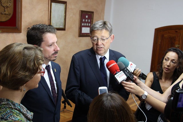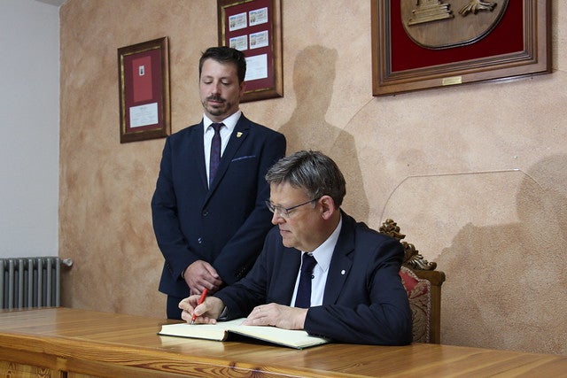 A la Casa de la Vila ha estat rebut per l’alcalde, Vicent Muñoz i la corporació municipal, a més de les i els presidents de totes les associacions de la Font de la Figuera i multitud de veïnes i veïns. També hi eren presents la consellera d’Agricultura, Elena Cebrián, el Dir. Gral. D’Economia, Emprenedoria i Cooperativisme, Francisco Álvarez i el director general de Comerç, Natxo Costa, a més dels alcaldes de Fontanars dels Alforins i Moixent.