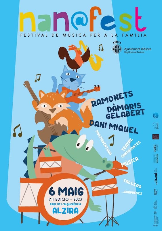 La setena edició del Nan@fest, festival de música per a públic familiar, se celebrarà el 6 de maig al Parc de l’Alquenència d’Alzira (la Ribera Alta) a partir de les 10.30 h. Hi haurà sessions al matí i a la vesprada, fins a les 20 h, i el cartell està replet d’artistes que faran gaudir als més xicotets. L’entrada és lliure.