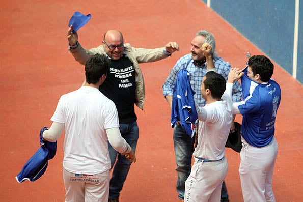 La partida ha començat amb l’equip blau (Alcàsser) dominant amb dos jocs consecutius que feien pensar que tot aniria bastant ràpid. Javi dominava amb la seua potència i amenaçava contínuament el combatiu equip roig (Sueca), amb quinzes magnífics propis dels millors representants d’aquest esport al País Valencià. L’equip roig semblava haver eixit una mica nerviós amb errades que feien que l’equip blau manara en el marcador.