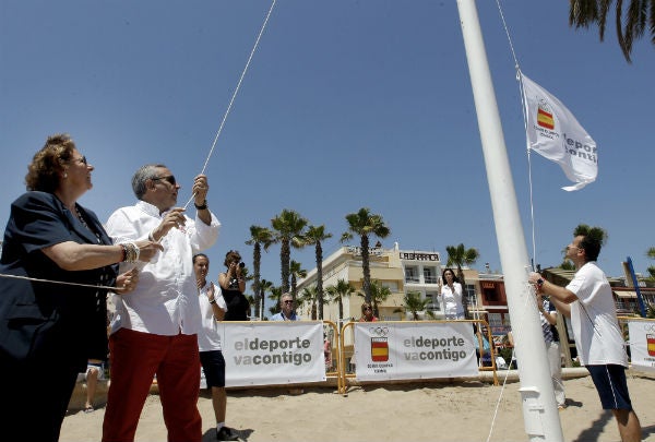 Prèviament, Barberá i Blanco han participat en l’acte d’hissat de la bandera que acredita la designació de l’ajuntament de València com a ajuntament olímpic en la platja de les Arenes de la ciutat.