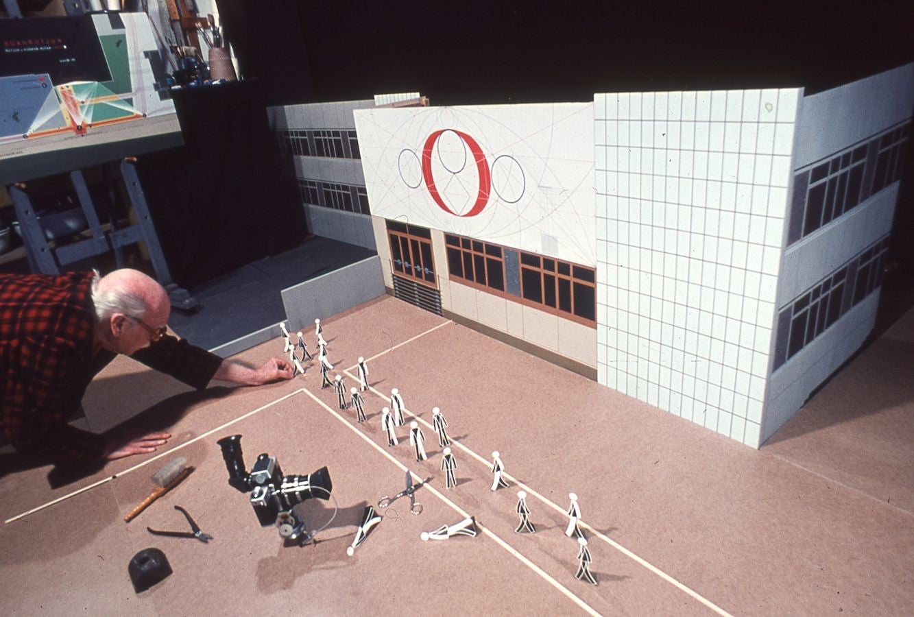 El mural, hui destruït, va ser projectat per Renau el 1968 com a part d’un conjunt d’obres de missatge edificant que van ser instal·lades en els murs d’un complex residencial estudiantil a Halle-Neustadt.