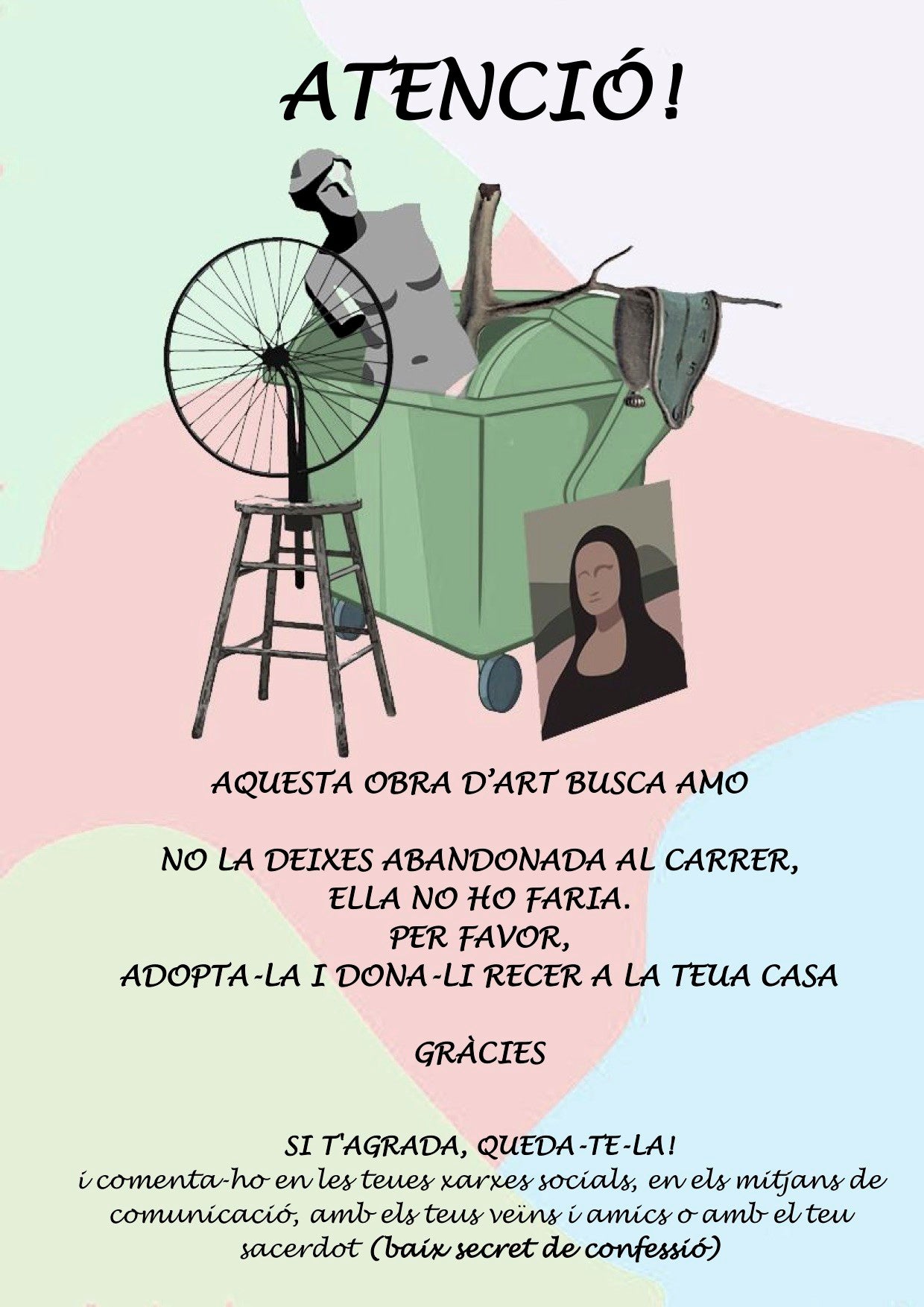 Finalment, el dia 29 de juliol, cal fotografiar l’obra dipositada al costat dels contenidors, amb la fitxa tècnica i el cartell de la proposta i mostrar la imatge a les xarxes socials amb el hashtag: #femartalfem o #femarttrash.