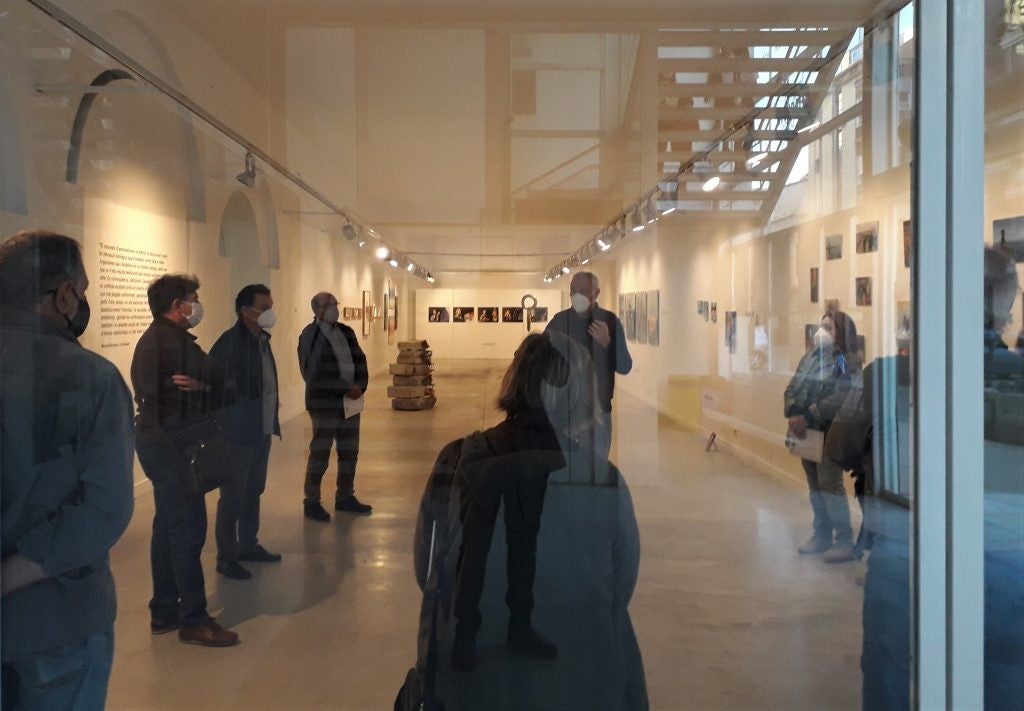 Entre reflexos, mascaretes i llums, mentre el xiquets pugen l’escala cap al repàs musical, Manolo ens explica la gènesi de l’exposició i la satisfacció de l’obra feta.