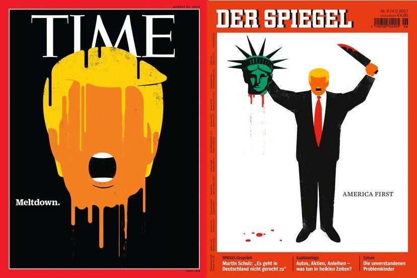 Director d’art de la revista Estafe, seues són algunes de les portades internacionals més impactants dels últims anys, com les icòniques imatges d’un Donald Trump sostenint el cap recentment decapitat de l’Estàtua de la Llibertat, en la revista alemanya Der Spiegel, solament unes setmanes després de proclamar-se president dels EUA; un Trump a punt de devorar la Terra, o el rostre de l’expresident fonent-se, en una altra mítica portada de la mateixa publicació mesos abans de la seua elecció, durant la campanya electoral.