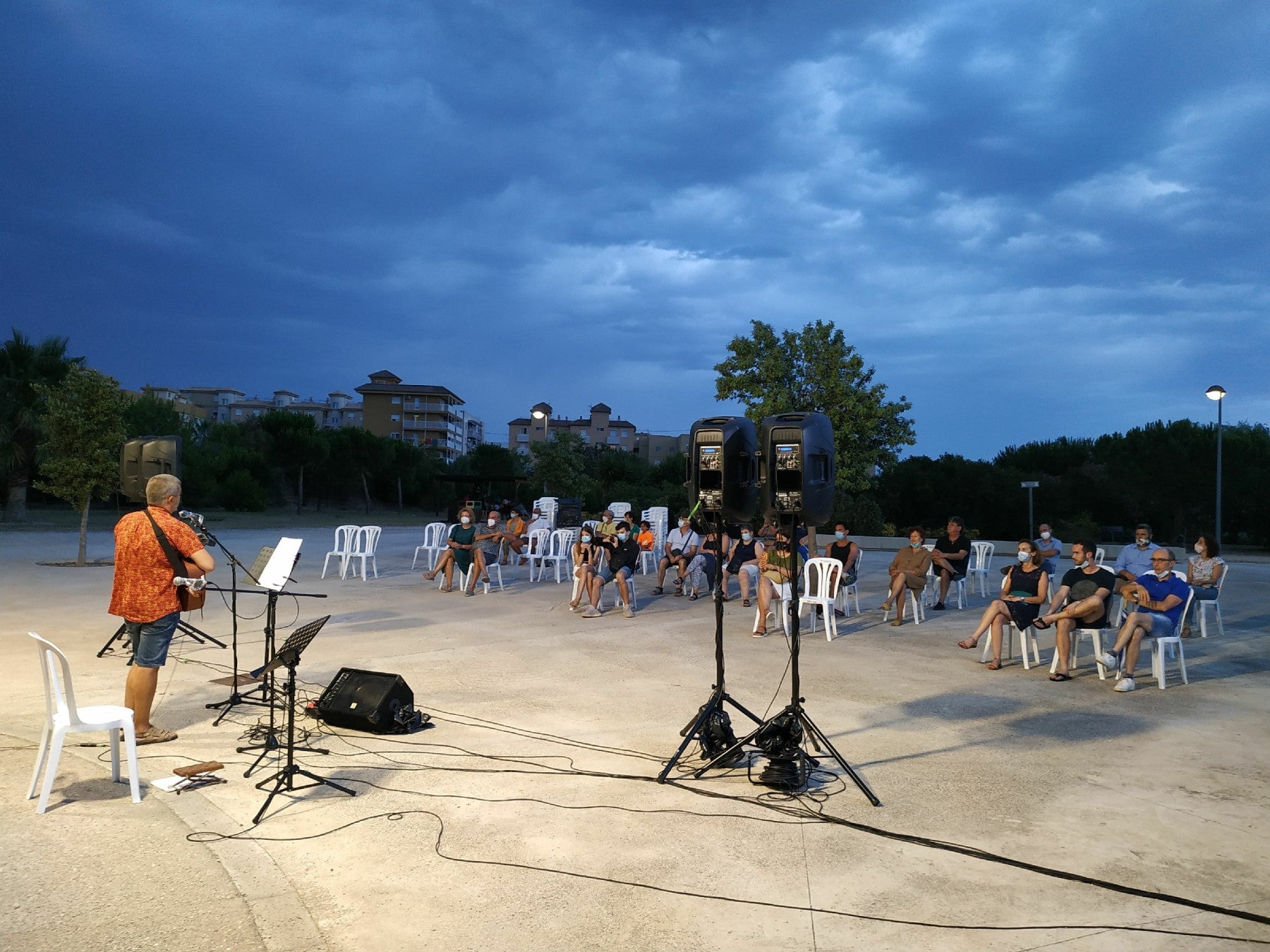 L’espectacle de llums, que va generar la tempesta elèctrica que es podia veure al nord del Mondúber, no va impedir que les persones que van acudir a la cita visqueren l’acte amb goig i entusiasme. Xus Garcia va ser el primer a posar-se davant del micròfon i ho va fer per a interpretar els temes «L’home vell» i «El Tio Guara». A continuació, va actuar Jeremías Soler amb les cançons «Tallareu les flors» i «Voz de fuego y sal».