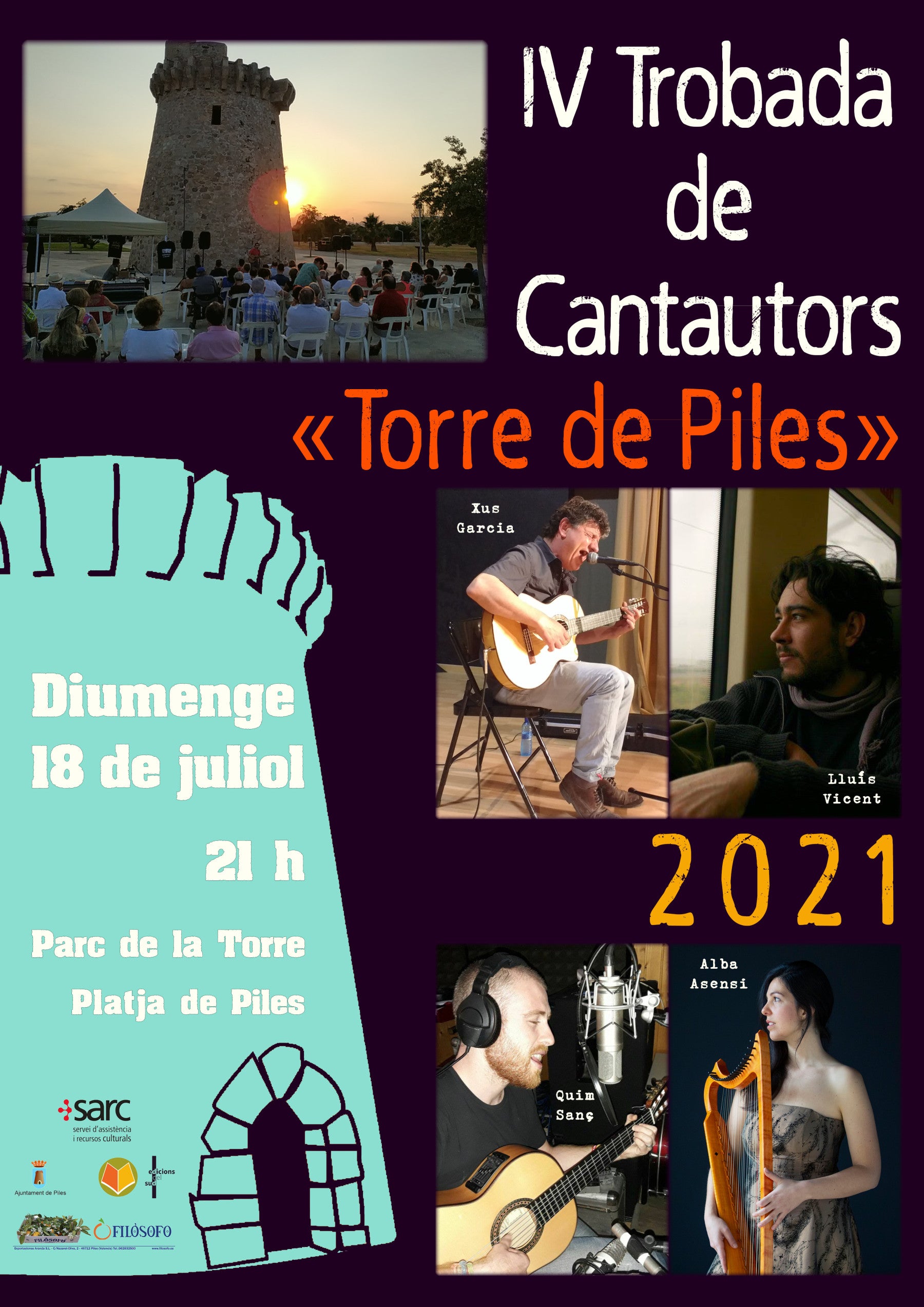 La IV Trobada de Cantautors «Torre de Piles» se celebra aquest diumenge al municipi de la Safor. Enguany hi participen quatre joves cantautors: Alba Asensi (Alacant), Quim Sanç (València), Lluís Vicent (Simat de la Valldigna) i Xus Garcia (Canet d’en Berenguer).