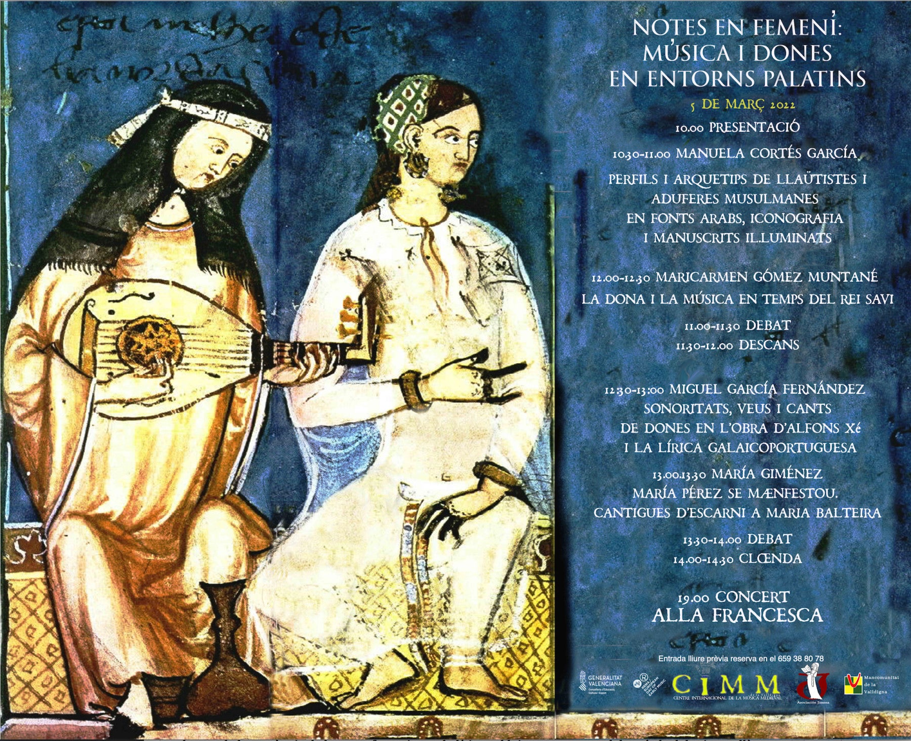 Al llarg del dia, un grup d’expertes i experts del món acadèmic impartiran una sèrie de conferències que abordaran diferents aspectes relacionats amb la presència femenina en les manifestacions musicals de l’edat mitjana. Posteriorment, tancarà les activitats l’actuació del mític ensemble francés de música antiga Alla Francesca, fundat el 1989 per Brigitte Lesne i Pierre Hamon i pertanyent al Centre de Musique Médiévale de Paris (CmmP).
